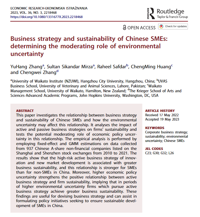 金融学2018级本科生章城玮、黄铖铭、张宇航、金小嫣在Dr.Sultan老师的指导下,以一作发表多篇高水平论文,其中SSCI一区1篇,二区3篇。